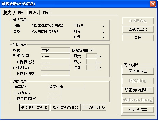 由Q03UDE 用GPPW內的MELSECNET通訊測試顯示通訊中止