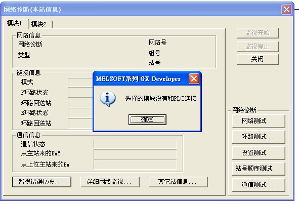 由A3A 用GPPW內的MELSECNET通訊測試顯示找不到模塊