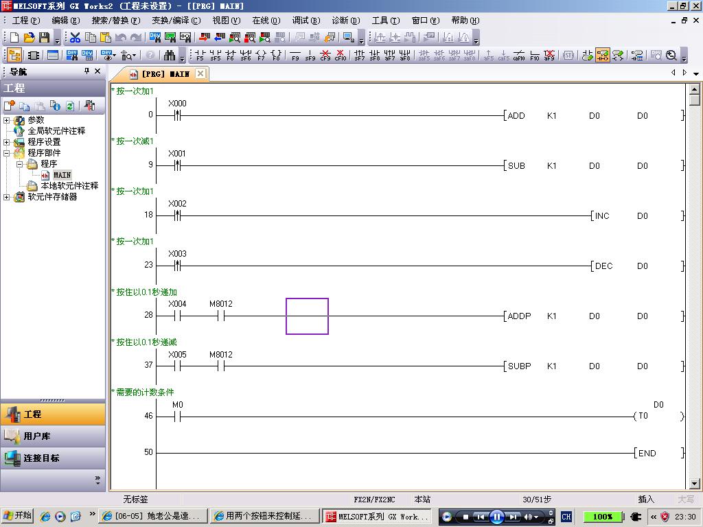 師父們,用兩個按鈕來控制延時的時間加減,應該怎樣編寫程序(三菱的PLC)
