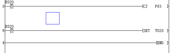 當(dāng)X0為ON時(shí),程序跳到指針P63處