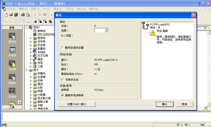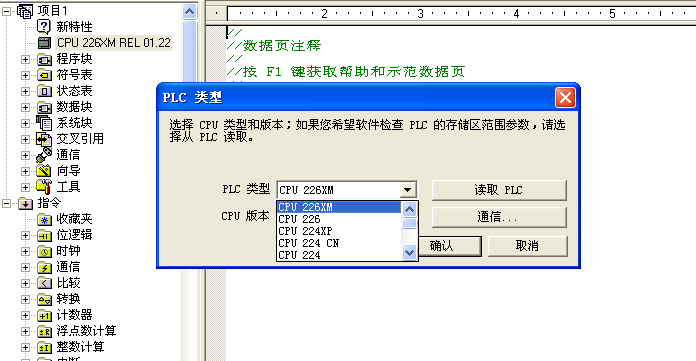 通信線纜問題,系統里的CPU類型沒有226CN,有226就可以通信。