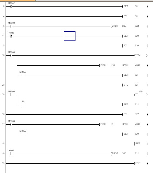 Y1為脈沖控制,Y4 為方向控制,為什么S20這一步一直在控制呢,M8029不是脈沖發完后置1嗎,程序怎么不往下走呢