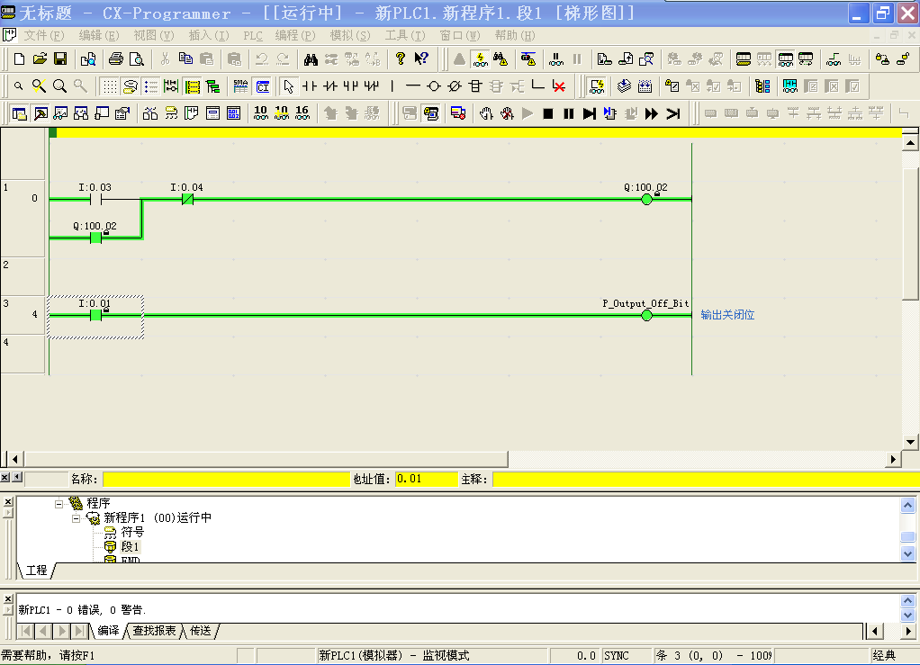 請(qǐng)幫忙看一下這個(gè)程序是咋會(huì)時(shí)啊,歐姆龍的模擬軟件。該程序中的Q100.02,在A500.15置1時(shí),為啥不復(fù)位啊。問題出在哪啊。歐姆龍的輸出關(guān)閉位與三菱的輸出禁止M8034用法不一樣嗎。