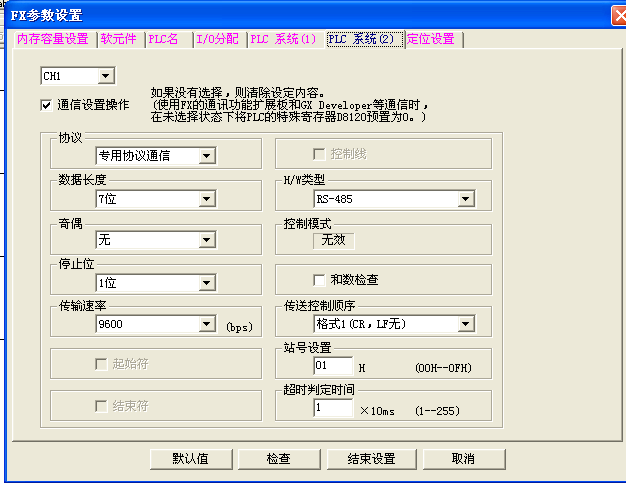 你的PLC用的是編程口還是擴展通訊口,編程口的參數是固定的,只有擴展口才設參數。