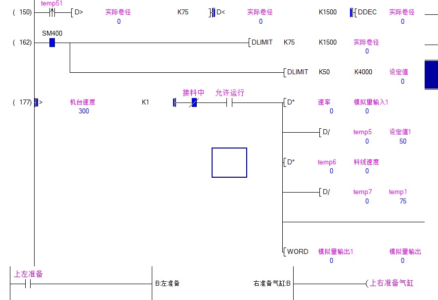 我以前的一臺機8套的放卷程序加上張力的控制程序,坐下來的程序都大概在2W左右.我也參考別人的程序做成的,比較簡單,現在整臺機的程序才不到1W.