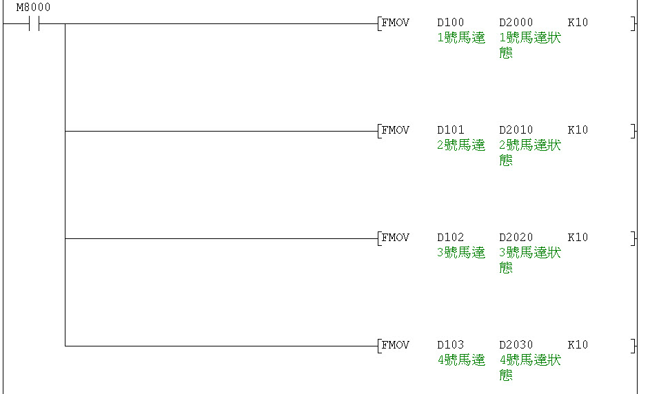 例侞 : D0 輸入的是1號,與D100內容一樣也是1號,就送1號馬達的料,