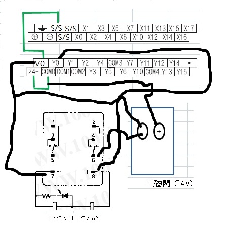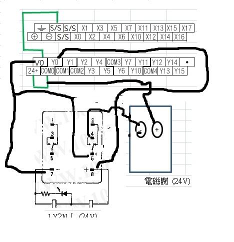 引用引用第12樓zrsheng于2014-01-18 11:22發表的 :從型號上看你這個是繼電器輸出的, ov接繼電器線圖的7#端子,plc輸出點接繼電器線圈的8#端子