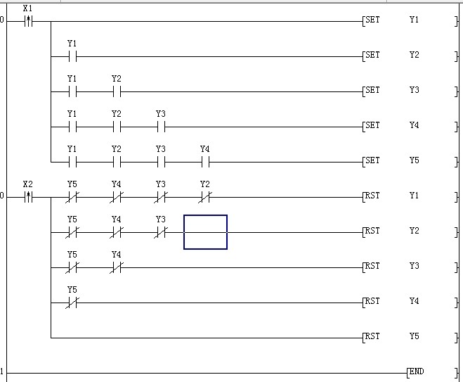 大家好,請(qǐng)教大家一個(gè)問(wèn)題,我想用兩個(gè)按鈕控制一個(gè)由5個(gè)氣缸及1個(gè)步進(jìn)電機(jī)的設(shè)備。