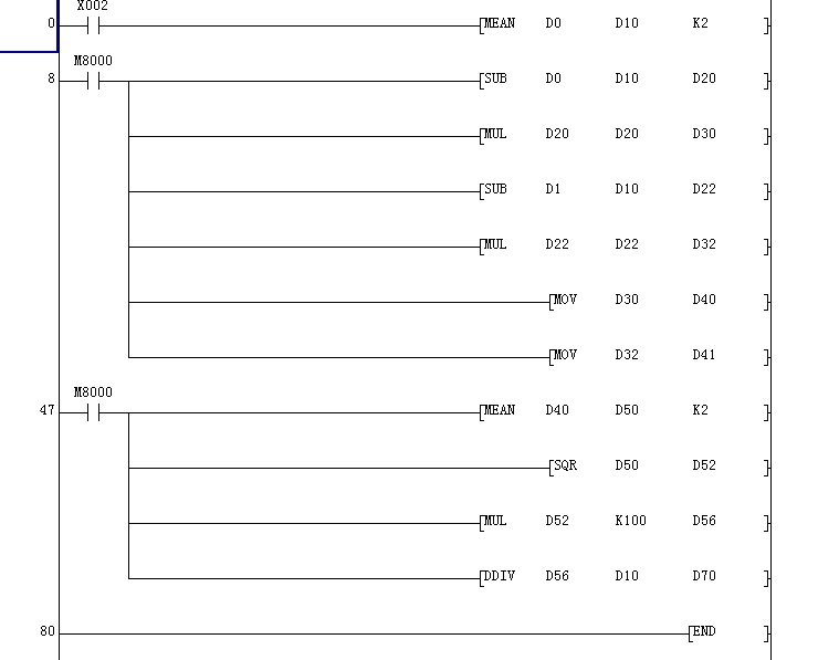 MEAN  是求平均值, SUB 減法 , MUL乘法 ,SQR 是開方,DDIV是32位除法