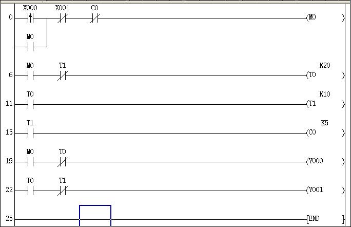 要求:x0啟動后,y0先動2秒,然后y1動1S,循環5次。Y1與Y2同時停止。