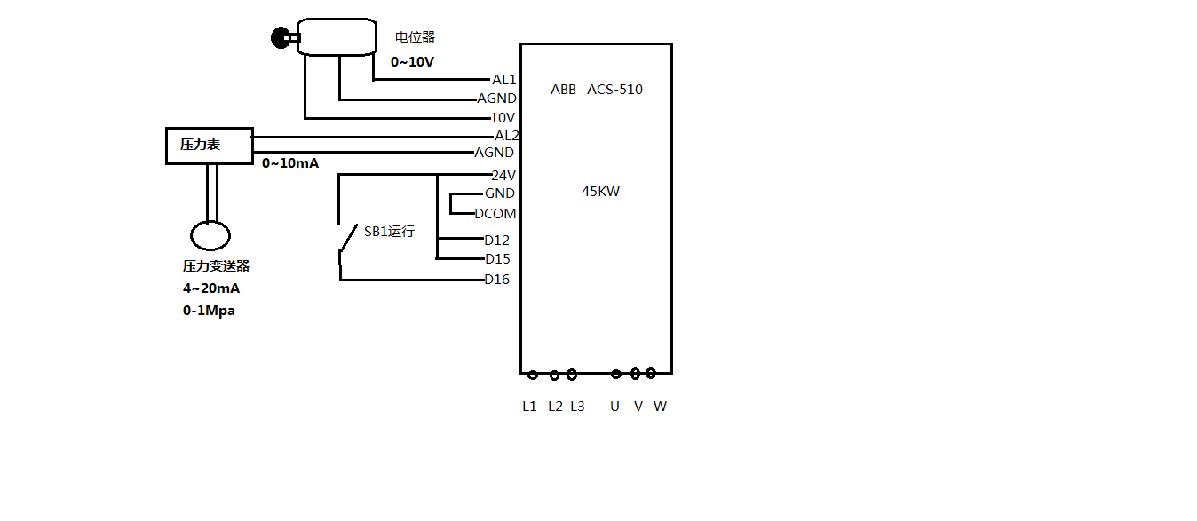 求助 ABB ACS510恒壓供水  詳細設定   接線圖以上傳      電位器為設定值  壓力表輸出為實際值