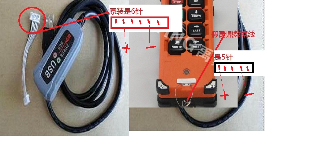 河南的禹鼎F21-E1B數據線口是5針,如何用6針的數據線讀取數據?