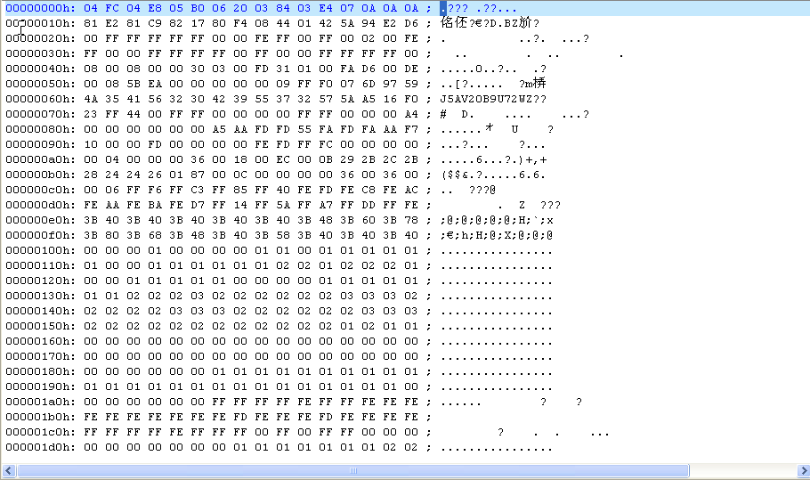上面是HF-KP23編碼器上25L160讀出的BIN,用UE打開部分截圖。大家可以看出KP23 ID在哪個地方。16FF2300  是KP23的ID.如果我要改為KP73.只要把2改為7就可以了。答案是否定的。J3以上的電機編碼器的EEPROM中保存著這個電機的參數(shù)。ID改為73,但別的不改還是23的參數(shù)。使用起來,電流這一關就過不去,必報警。性能就不用說了。當然你可以改驅(qū)動器輸出的采樣電阻。日系的都用電阻串聯(lián)在輸出電路上,然后光耦隔離給主控當眼睛,如HCPL7860光耦。現(xiàn)在的DSP,FPGA只要國人會勤快,可以做出日系的水平。大家如有HF-KP73電機的編碼器,壞了無力修了。可以用編程器讀出25L160的代碼,保存為BIN格式。發(fā)到我的郵箱CZCA@163.COM,本人感謝您的支持。