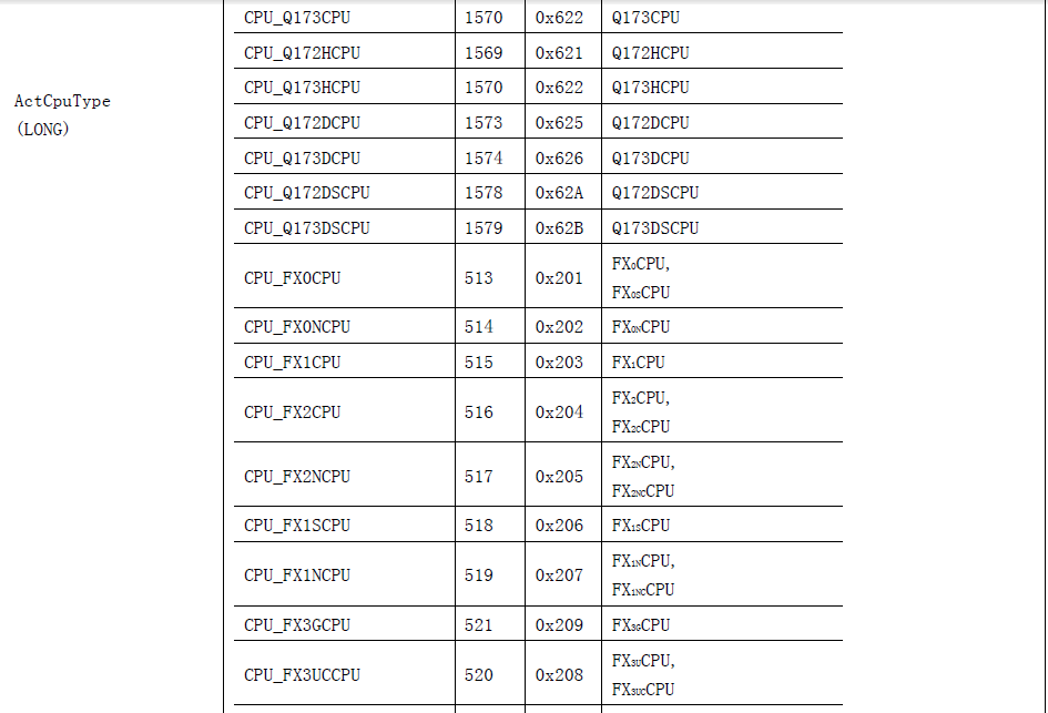 FX3U對應的ActCpuType是多少,求解,急用