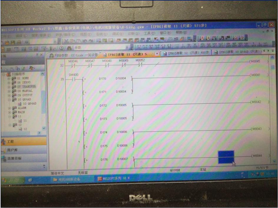 圖3是溫度模塊部分程序(從程序看出溫度模塊遠(yuǎn)程寄存器為D10004-D10011,八通道)