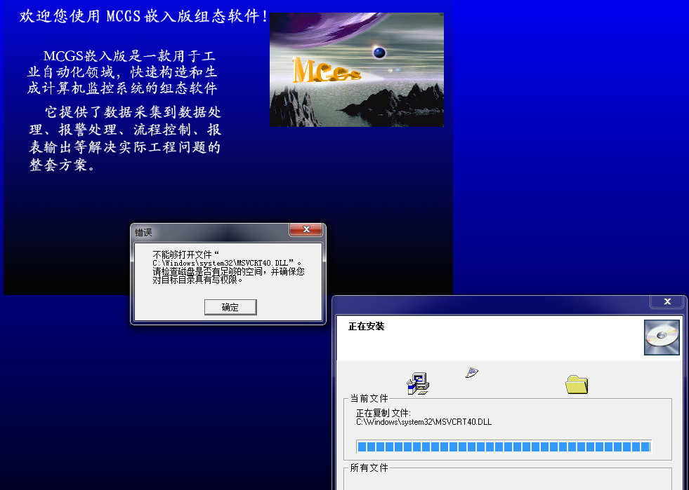 C:\Windows\System32 下搜索錯誤提示的所有DLL,右鍵依次取得管理員權限,安裝順利通過