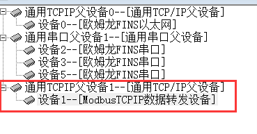 昆侖通態觸摸屏連接幾個omron PLC我們想通過網絡讀取觸摸屏讀到的數據,因為有的數據不是經過網絡傳給屏幕的,所以在軟件里添加modbus tcp數據轉發設備