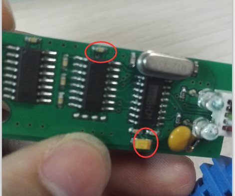 右下角是鉭電容,和普通電容不一樣的,有標記的是正極.
