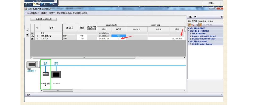 三菱5U PLC  做SLMP  通訊求大神指點。最好有范例。5臺5U PLC 和維綸觸摸屏做以太網通訊。
