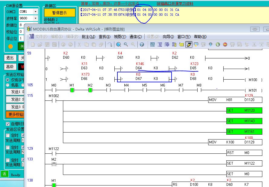 這個(gè)繞路多的就是儀表回傳的是7個(gè)字節(jié),數(shù)據(jù)是兩個(gè)十六進(jìn)制數(shù),分別存放在兩個(gè)數(shù)據(jù)寄存器內(nèi)部,讓他們弄成一個(gè)寄存器用十進(jìn)制顯示走了彎路