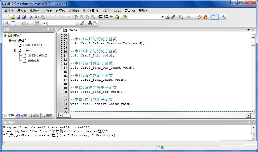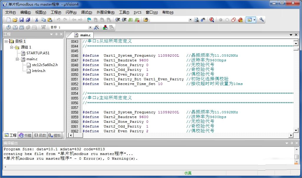 //05、實現了上位機+串口1從站串口2主站+變頻器三級MODBUS RTU串口通信。