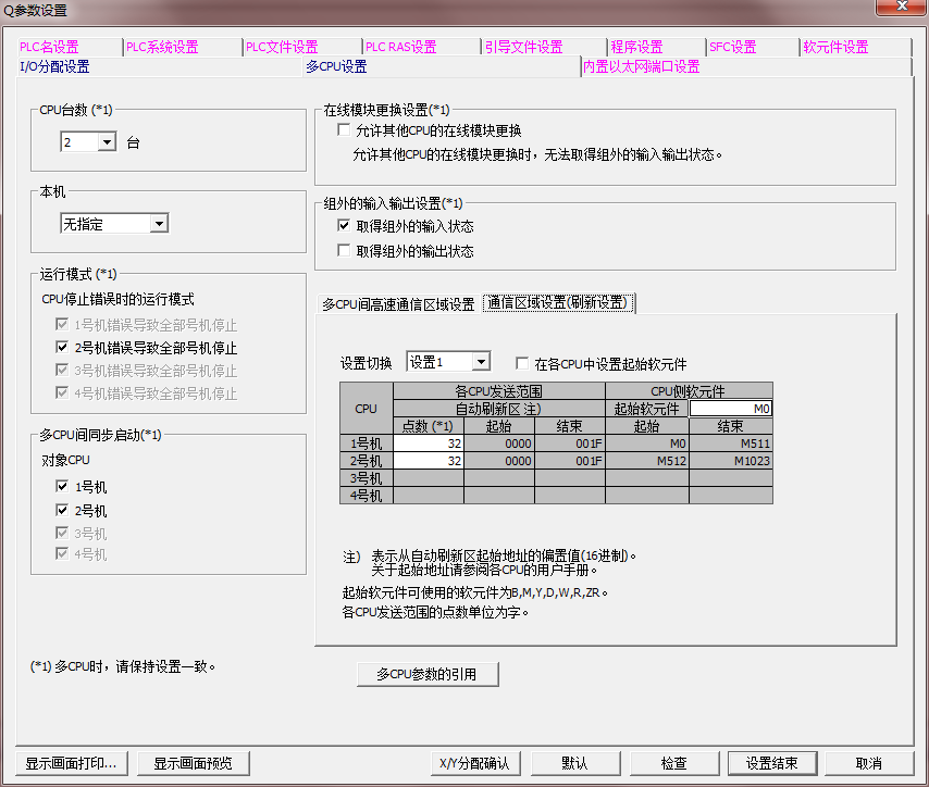 我的是Q03UDE CPU和Q172H CPU放置8槽插板上進行多CPU工作,Q03UDE用的是GX WORKS2,Q172H用的是MT DEVELOPER2,兩個工程的多cpu設置也沒問題,但為什么一直在報錯呢?難道是這兩款CPU版本問題相差太遠還是什么?