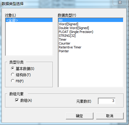 FB塊里都是自己定義的標簽地址,可以定義為數組類型,位[0],個數為3。三個位分別為位[0]、位[1]、位[2]