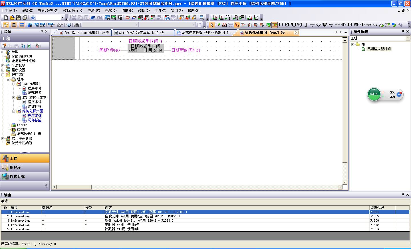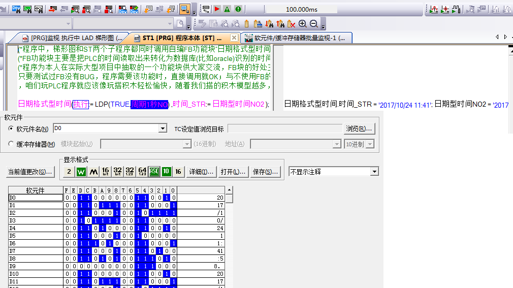 次樣例為項目中的一個FB功能塊的編寫和調用,FB用的是ST語言編寫,可以分別被梯形圖和ST子程序調用,FB塊輸出的是日期型時間,也就是數據庫識別的時間類型。