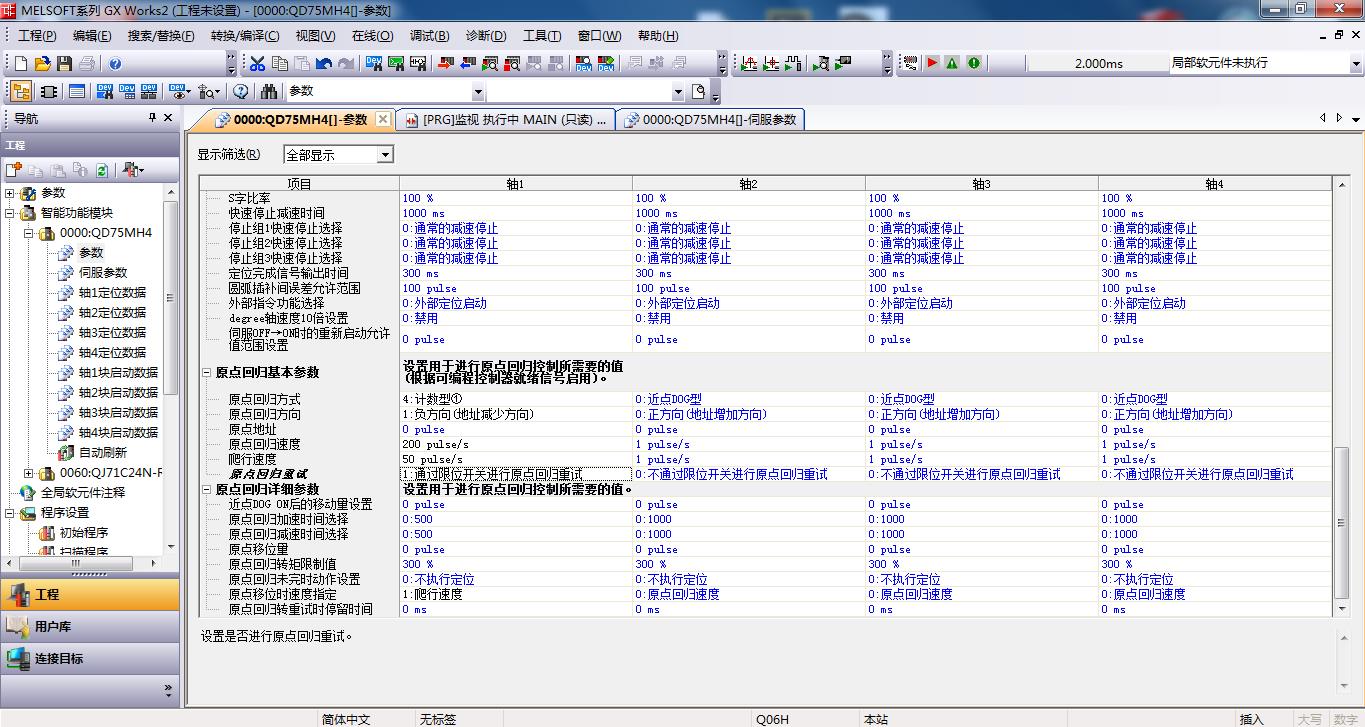 如圖1和2.三菱J3-10B和QD75MH4在works2中用計數型1或者近點狗回原點方式時,一碰到限位就報警,可是我回原點重試已經設置為1了,該報警還是報警,該如何解決,有沒有大神幫忙看看,萬分感謝!