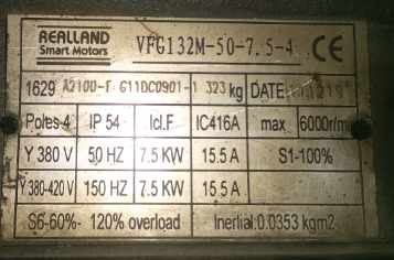 銘牌上看,電機是4極,星接150Hz時,最高轉速=60*150/2=4500,所以轉速不會到6000.除非頻率升到200Hz。