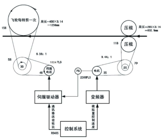也不知道是不是150HZ時是6000轉,設備是這樣的,送料壓棍周長832.1mm  減速比9.44    觸摸屏控制車速300m每分時 變頻器80HZ( 上限頻率80)