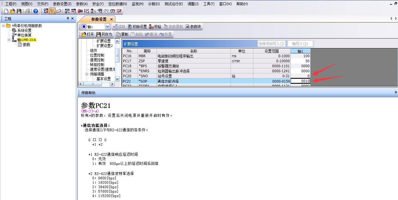 4,把伺服PC20設置0    PC21 設置10