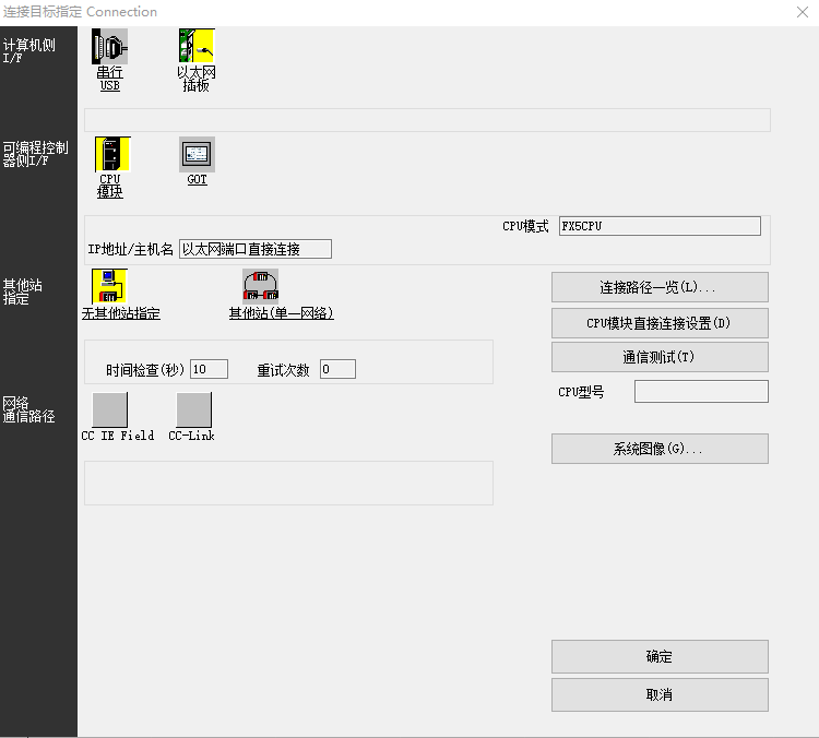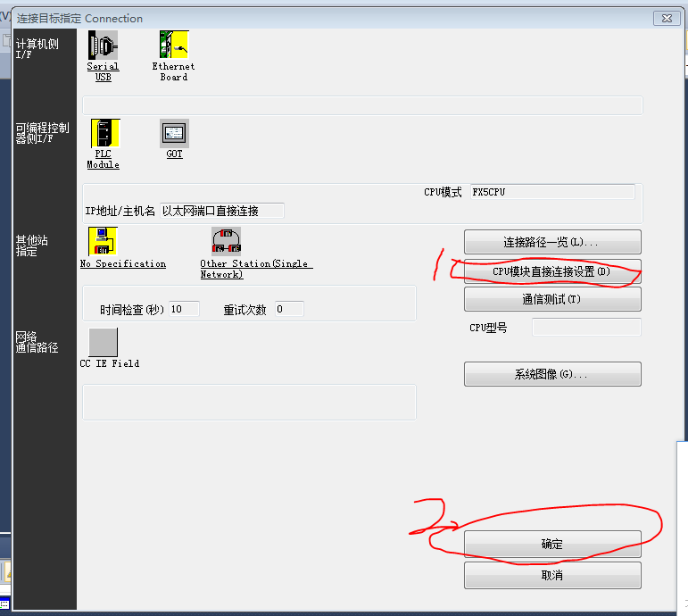 通訊設置那里有通訊類別,如果網線直連PLC就選直連,如果通過路由器就選通過路由 然后測試