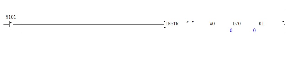 INSTR " " W0 D70 K1 意思是在W0為起始的寄存器位置查找是否有 空格字符,并把找到的第幾個位置數字放到D70中。