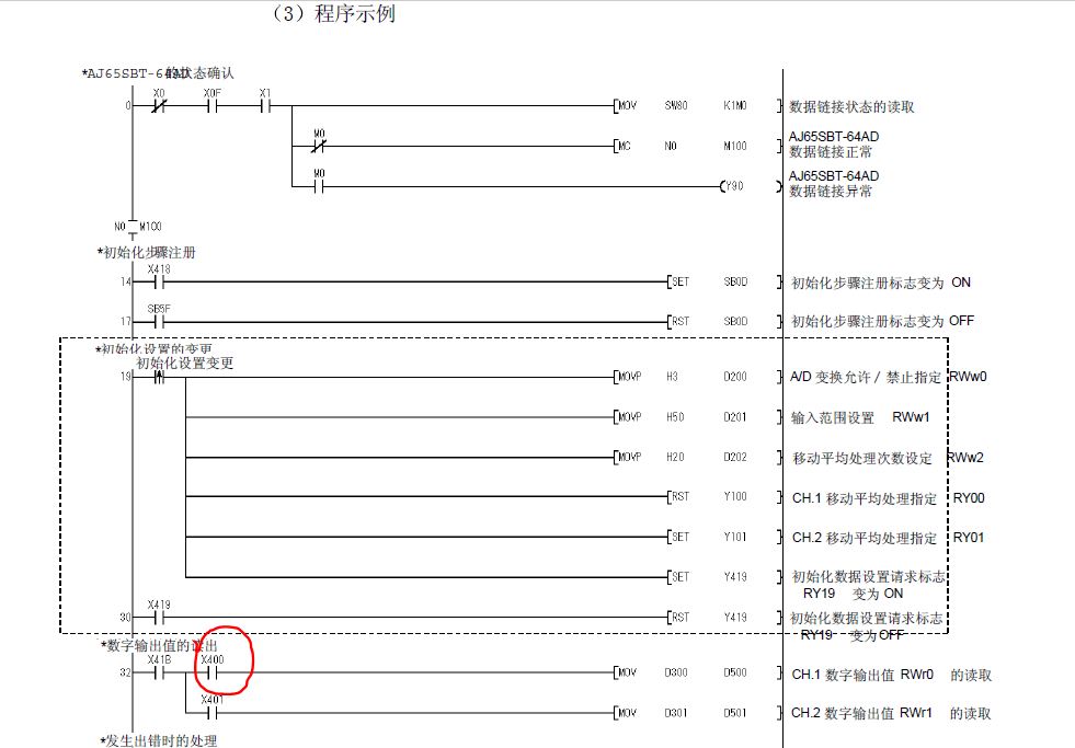 1、通電時64AD會使RX(n+1)8=1,向主站發送初始化請求。