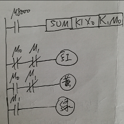 請(qǐng)教下各位老師傅,我畫(huà)的這個(gè)梯形圖,總共三個(gè)按鈕能不能做到?jīng)]有按鈕按下時(shí)紅燈亮,一個(gè)按鈕按下時(shí)黃燈亮,兩個(gè)及以上按鈕按下時(shí)綠燈亮。新人自學(xué),還望師傅們不要取笑。