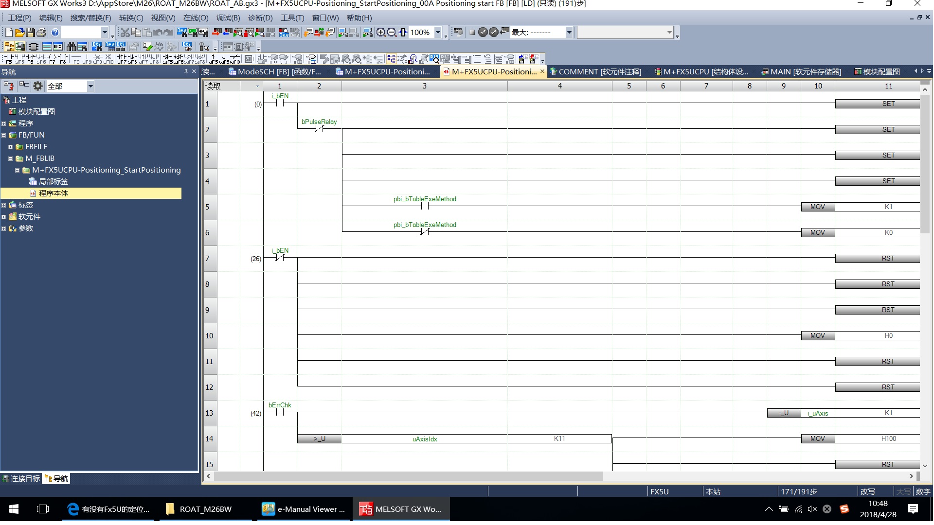 目前準備用FX5U做個結構化程序,但發現幾乎找不到這樣的例程,三菱GXW3里沒有,網上也沒有,如果寫一個通用多軸定位的FB,比如回原點,定位,不知道使用SM5660,SD***,支不支持FB賦值?有做過FX5U結構化的朋友嗎,一起交流下