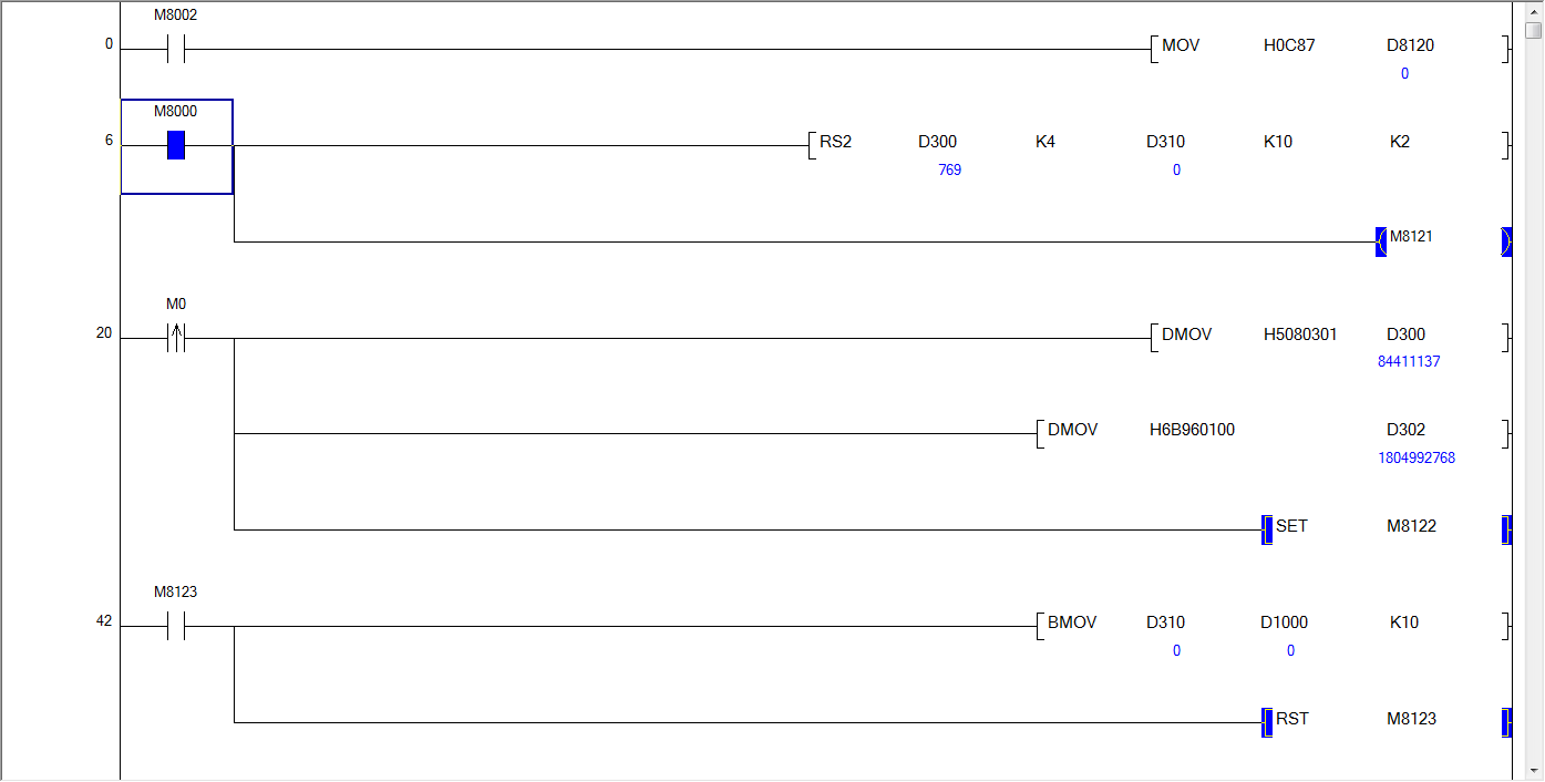 FX3U-485BD與溫控器 Modbus RTU通訊讀取程序,無法讀取溫控器里的固定值2222.2