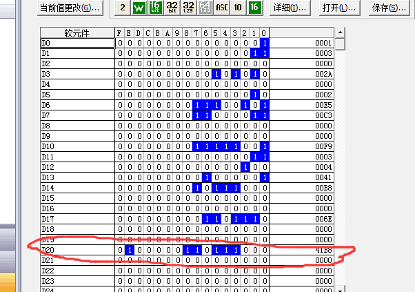 我現(xiàn)在用3u和儀表通訊,收到的數(shù)據(jù)是41B8 0000分別存在D20.D21里面,這個(gè)是單精度浮點(diǎn)數(shù),轉(zhuǎn)換成十進(jìn)制就是23,也就是儀表測(cè)量值,現(xiàn)在的問(wèn)題是無(wú)法把這個(gè)數(shù)值轉(zhuǎn)換成十進(jìn)制,三菱屏和威綸屏都試過(guò)了,都沒法轉(zhuǎn)換出來(lái),不知道怎么整了,誰(shuí)能給個(gè)提示嗎?謝謝!