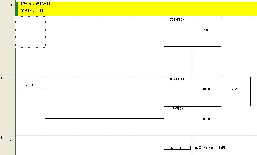 因?yàn)镕OR指令的循環(huán)次數(shù)為每個(gè)掃描周期的循環(huán)次數(shù),這個(gè)循環(huán)走一次FOR指令,下一個(gè)掃描周期再執(zhí)行一次。