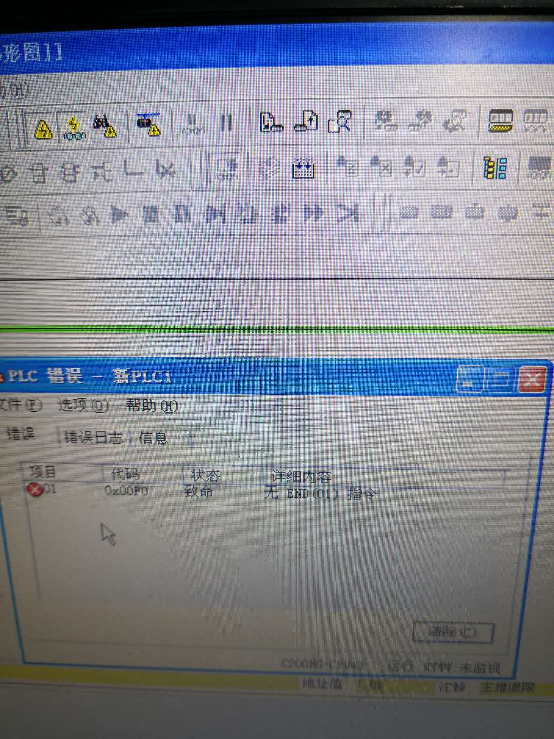 最近做一個用CQM1H-51CPU加CQM1H-SCB41的通訊插板和溫表做485通訊的項目,按說明書上將CX-PROTOCAL的CPU設定為C200HG-CPU43以后,將協議傳到PLC上,在返回CX-PROGRAM上在線時發現原來的程序無法連接,要將PLC類型也改為C200HG以后才能連接,而且PLC報錯,顯示沒有END指令。這個PLC就無法工作了。想問一下是什么問題,求各位大神解答。