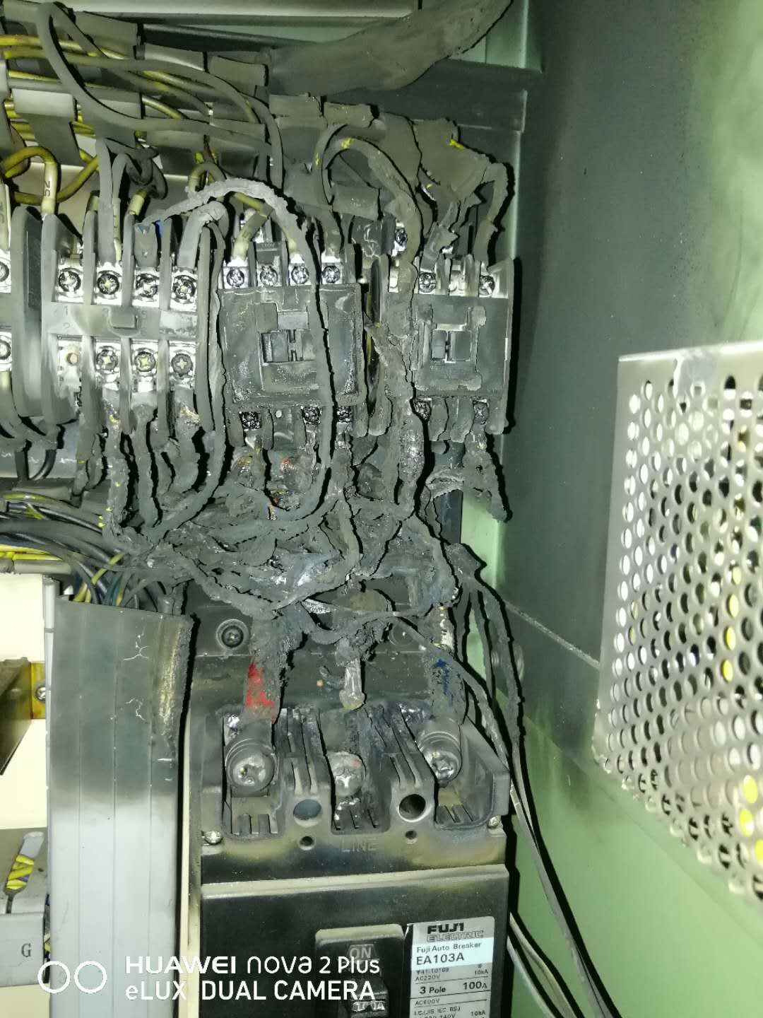 空氣開關那里接頭出問題了,發熱起火拉弧引起相間短路