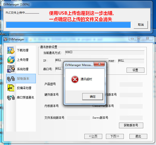 更新:開始裝的軟件是EV5000 V1.7,現在改成V1.6可以上傳工程了,但又遇到了新問題,反編譯時提示組態軟件版本低于1.2生成的工程文件不能反編譯,右是現在EV5000找不到V1.2以下的版本了,誰還有沒有老版本?