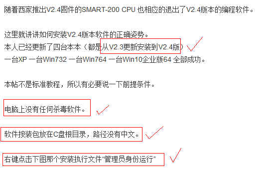 最近看了很多升級2.4的,出現很多問題,以前裝過一次2.3報錯了,趕緊卸掉,沒敢再次嘗試,本想2.4能改善的,誰知還有這么多問題。似乎比博途還要難裝,也不敢嘗試安裝2.4了,因為現在我的本本裝了太多東西,真要不行重做系統那就麻煩大了。幸虧現在也沒用到SMART,西門子不改進一下嗎?