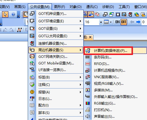 1、點擊 公共設置 ,周邊機器設置 ,機算機(數據傳送)