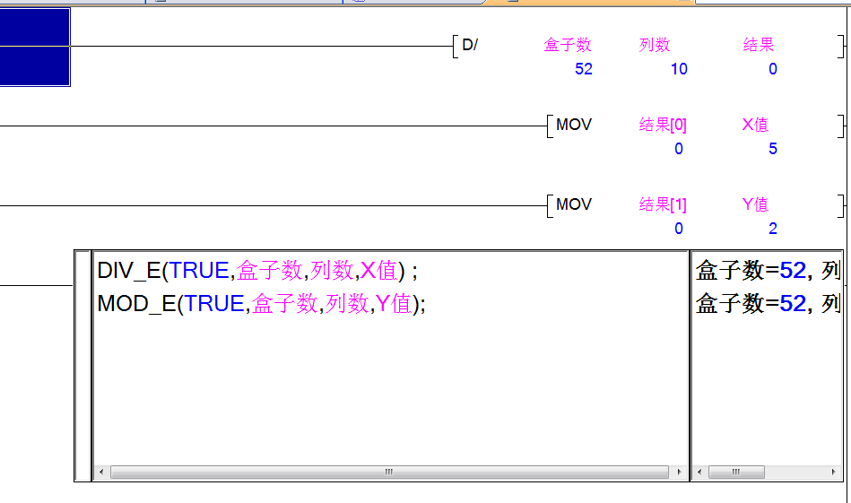 之所以用到變址是因為在FB塊中用到除法,除法的結(jié)果和余數(shù)是相鄰地址兩個D,需要用到余數(shù)