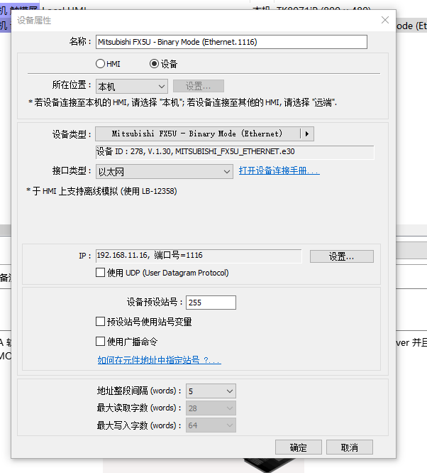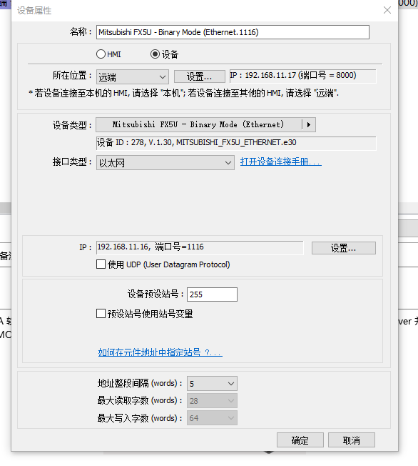 1.PLC IP地址:192.168.3.250 以太網配置:SLMP連接設備 TCP協議  端口號:4999