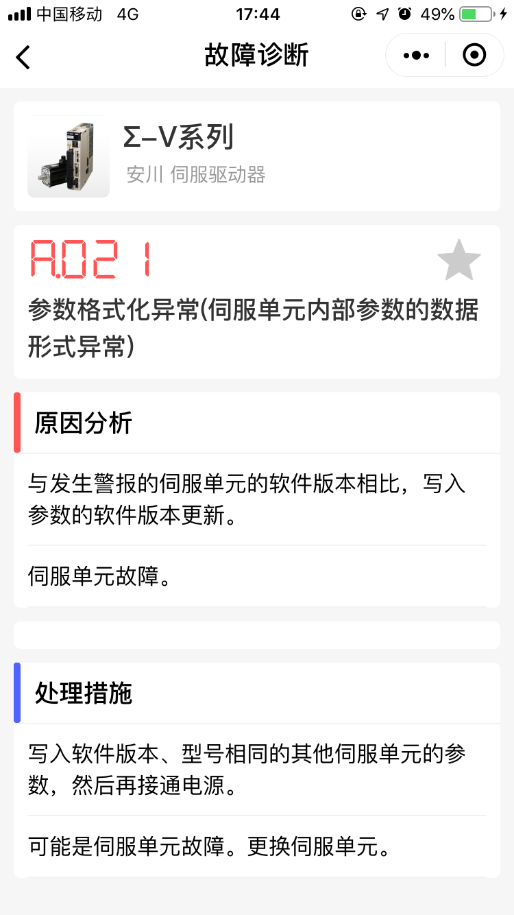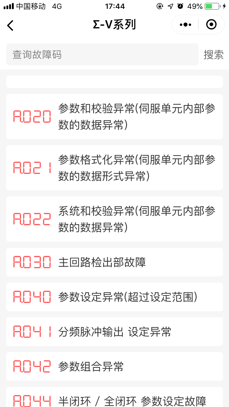 這款小程序是找做開發(fā)的同學(xué)設(shè)計(jì)的,里面包括國(guó)內(nèi)外只能品牌的主流變頻器及伺服運(yùn)動(dòng)控制器的故障碼及警告信息,界面清晰美觀,使用方便,分享給有需要的同事