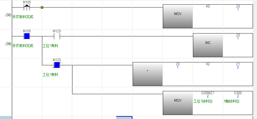 他用一個D去記錄所有工位上有沒有料,就只能這樣。把D里面的標志位(1)左移,用WAND。