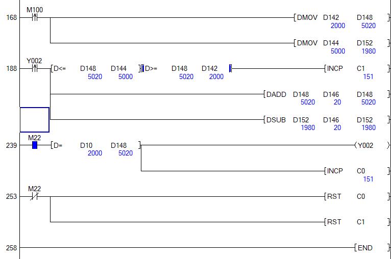 沒有加高數計數模塊的情況下,用PLC內置的當前位置寄存器的值作為基準,完成了等間距觸發,后續會使用高速計數器繼續測試,期待結果更加精準。